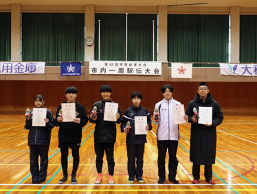 開催日:令和8年2月15日(日) 会 場:芝運動公園・総合体育館 スタート/安倍小学校 ゴール/総合体育館前 6区間 22.6km 参加チーム数:29チーム 全結果(PDF) 中学生 一般 オープン 区間賞 順位 中学生の部 一般の部 オープンの部 1 ならスポACジュニアB 快足桜 伊藤家の酒宴 01:19:29 01:31:12 01:13:51 2 ならスポACジュニアA オレンジリボン 高野の民の衆 01:22:46 01:36:28 01:15:55 3 田原本北中学校 やましんランナーズA NRF特急 01:23:03 01:40:04 01:18:59